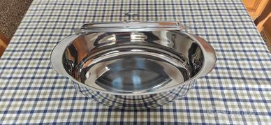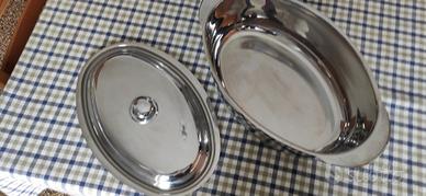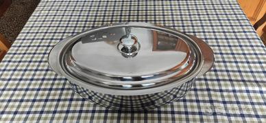 In acciaio inox 18/10. Lunghezza 36cm, larghezza 24cm, altezza 12cm. Adatta anche per il forno. Nuova - Mai usata. NO spedizioni.