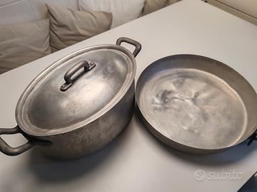 Pentola con coperchio ovale 33cmx23cm e padella diametro 35 cm in Alluminio Vintage professionali, ottime per la cottura di carni, verdure,ecc.
