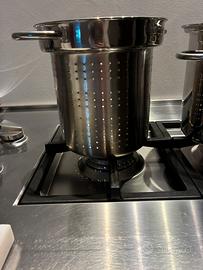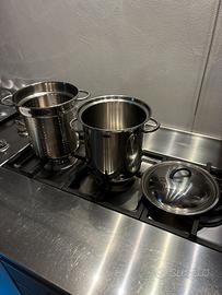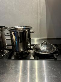 In acciaio inox 3 pezzi Diametro pentola cm 20 - diametro coperchio cm 22,5 - altezza pentola cm 21