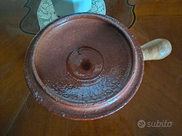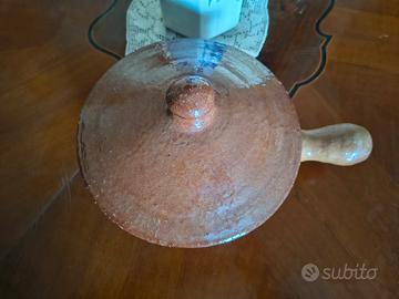 Pentola di coccio/terracotta toscana piena, smaltata, con manico. Completa di coperchio. In ottime condizioni. Perfetta per le zuppe.