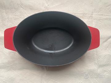 Vendo pentola Fissler in ghisa ovale grande, colore rosso, usata poco, completa di coperchio.