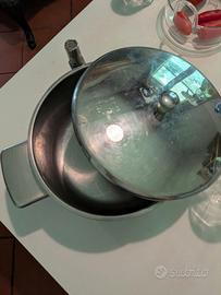 Vendo pentola vapor control per cottura a vapore indiretto della Fogacci, Øcm 23,5 e altezza 13 CM completa di coperchio, Pentola in acciaio inox 18/10 che cuoce a temperatura costante che non supera mai i 105°C, livello ideale per cuocere qualsiasi alimento senza dover mescolare e senza il rischio di bruciature (per ex marmellate), come descrive il sito della Fogacci. Per piano cottura a gas.