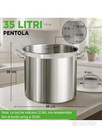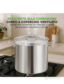Pentola Acciaio Inox 33 Litri con Coperchio, Pentola Induzione Grande con Manici Rinforzati, per Tutti i Piani Cottura, Calore Uniforme. Nuova mai usata ancora nello scatolo
