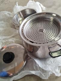 Grande pentola IMCO Waterless con manici e pomolo nuovi , completa di accessori per cottura a vapore Misure Interne Altezza cm 20x diametro cm 24