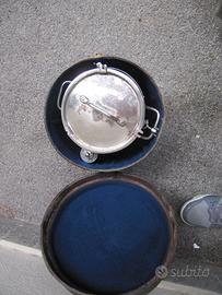 PENTOLA IN ACCIAIO DA PIC-NIC CON SERBATOIO PER OLIO E CUSTODIA IN CUOUIO