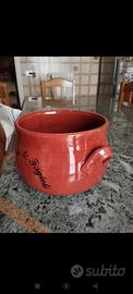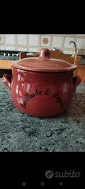 Pentola in coccio con coperchio adatta anche per cottura al forno. Mai usata, misura 20 cm di diametro × 20 cm di altezza. In perfette condizioni