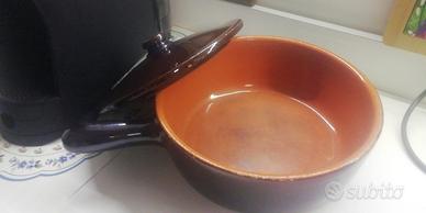 Vento pentola in creta con coperchio ed un manico