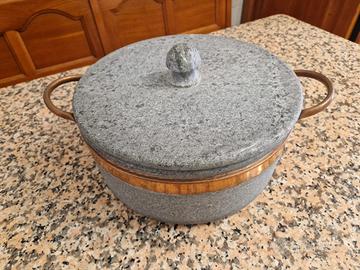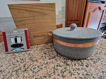 Casseruola in purissima pietra ollare, tornita con manicatura in rame: diametro 28 cm, alta con 2 maniglie e coperchio. Confezionata in cassetta di legno originale. NUOVA - MAI USATA. Dimensioni: Diametro cm 28, Altezza cm 12 Marca: PENTOLE AGNELLI PROFESSIONAL COOKWARE in regalo una piastra radiante in ghisa smaltata per utilizzo su fiamma ritiro a mano su Roma, zona Appio Latino