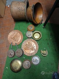 2 paioli in rame uno è bucato e altri oggetti pure in rame come da foto