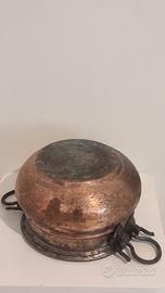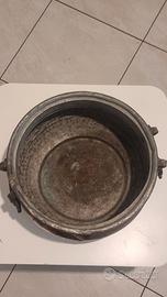 Materiali: Rame martellato, interno stagnato, maniglie in ferro battuto