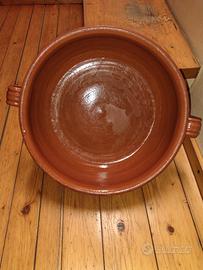 Pentola in terracotta smaltata per cucinare es minestra di pane misure diametro da sotto 30 x12 in alto diametro 37 circa