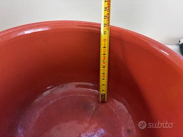 Vendo pentola in terracotta smaltata con coperchio, ideale per cotture lente e uniformi come pesce al cartoccio, stufati, legumi e zuppe.