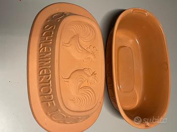 Pentola in terracotta Schlemmer-Topf vintage con fondo smaltato, tegame in argilla naturale Per cottura arrosti