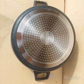 Pentola induzione con coperchio vetro diametro 26 cm colore nero NUOVA