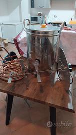 Vendo pentola inox 50 lt con rubinetto , termometro , pale per ammostamento birra tutto inox con motore a 12 volt ( volendo ho anche trasformatore 220 v / 12v ), coperchio originale e serpentina raffreddamento in rame , usata per circa 10 cotte .