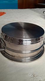 pentola acciaio inox multistrato completa di un'altra pentola con funzione scolapasta o cottura a vapore completa di coperchio in vetro. Diametro 20 cm , altezza 9 cm. solo la pentola