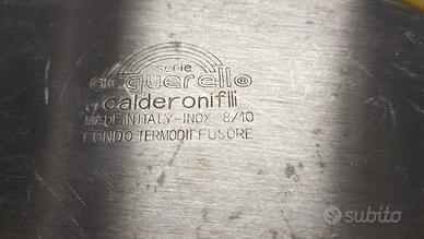 Raro pezzo originale Fratelli Calderoni fine anni '80, serie Acquarello. Qualità dell'acciaio d'altri tempi, fondo ad alto spessore. Nuova, mai messa sui fuochi, fondo perfetto."