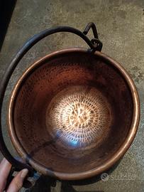 Pentola in rame, fondo curvo per stufa a legna, buono lo spessore per una buona cottura della polenta.