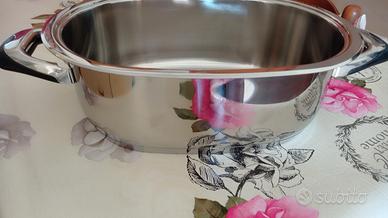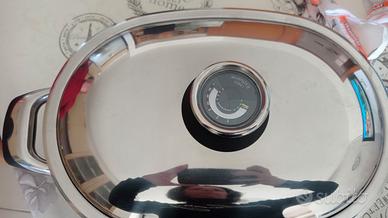 vendo pentola utilizzabile come pesciera e oltro mai usata..in acciaio inox lunghezza 36 cm più manici..fondo da due cm circa..bella pesante con coperchio che segna la temperatura. perfette condizioni. ottimo affare.