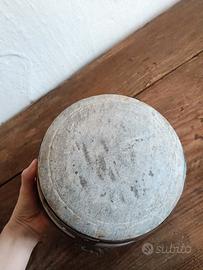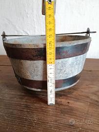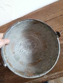 Pentola in pietra ollare antica, con manico e struttura in metallo, chiamata anche lavecc, diametro 22 cm. in ottime condizioni. adatta sia per cucinare che come oggetto decorativo per casa rustica o baita di montagna.