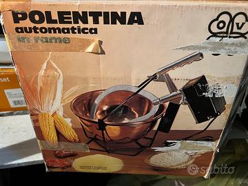 Pentola in rame con motorino per mescolare la polenta senza sforzo