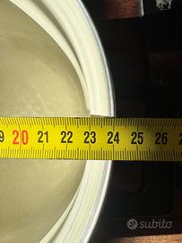 Vendo pentola vintage in metallo smaltato bianco con elegante bordo nero. Un pezzo originale prodotto in Yugoslavia, solido e di grande durata, perfetto per chi ama lo stile retro o Shabby Chic. • Condizioni: Ottime condizioni, smalto interno ed esterno molto ben conservato, lucido e senza macchie. • Dettagli: Manici ergonomici neri. Marchio originale sul fondo. • Uso: Ideale per cotture tradizionali o come elemento decorativo per la casa o il giardino. • Dimensioni: Diametro 24 cm. Disponibili anche altri pezzi in metallo smaltato vintage (pentole e bacinelle) della stessa serie. Guarda gli altri miei annunci! Solo ritiro a mano