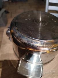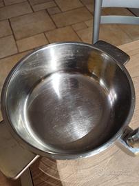 Vendo pentola vapor control per cottura a vapore indiretto della Fogacci, un po' ossidata sul fondo come da foto, ma che non pregiudica il suo utilizzo, Øcm 18, completa di coperchio, Pentola in acciaio inox 18/10 che cuoce a temperatura costante che non supera mai i 105°C, livello ideale per cuocere qualsiasi alimento senza dover mescolare e senza il rischio di bruciature, come descrive il sito della Fogacci. Per piano cottura a gas. Per ulteriori informazioni contattare