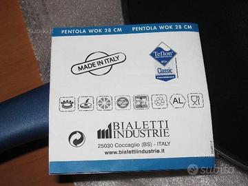 Vendo come da titolo e foto questa bella ed utile pentola Wok del nostro famosissimo e pregiato marchio italiano "Bialetti", come si vede ha due manici per una maggiore presa, è fabbricata in materiale antiaderente, dal diametro di 28 cm. E' un articolo di prima qualità, profonda per cucinare in maniera ottimale ed uniforme i vari cibi, tipicamente usata nella cucina orientale, ha il coperchio trasparente in Plexiglas mentre l'interno è in materiale Teflon appunto antiaderente. Si può utilizzare su qualsiasi piano cottura: sia sui classici fornelli a gas che sulle moderne piastre a induzione e sia su quelle in vetroceramica. Lavabile tranquillamente in lavastoviglie, non si rovina. E' nuovissima mai stata utilizzata. Ottima offerta! Prezzo regalo. Consegna rapida su appuntamento in città, no spedizione.