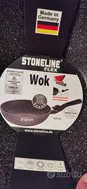 Pentola Wok con manico estraibile, marca stoneline. Nuova, aperta solo per verificarla e fare foto. Confezione originale, acquistata per sbaglio