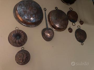 Pentole, stampi, brocche e vari utensili da cucina in rame antichi. Disposto a valutare qualsiasi tipo di offerta.