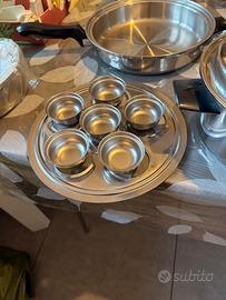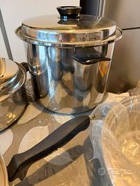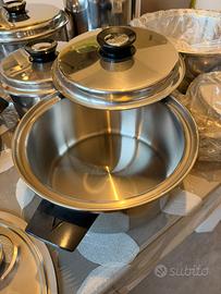 Vendo batteria completa di pentole in acciaio inox HOLIDAY by Vollrath produzione fine anni ’70 / primi ’80, qualità professionale. La batteria è NUOVA, MAI UTILIZZATA. ho rimosso personalmente la pellicola protettiva originale perché deteriorata dal tempo. Acciaio inox AISI 304, spesso e pesante, di livello nettamente superiore alle pentole moderne. “Fondo termodiffusore ad alto spessore" (fondamentale per Vollrath). "Ideale per B&B, Agriturismi o famiglie numerose". "Qualità acciaio superiore ai set commerciali moderni". 🟩 COMPOSIZIONE DEL SET (TOTALE 15 PEZZI) ✅ 1 pentolone grande formato ristorazione diam. 29 cm h.22cm ✅ 3 pentole con due manici (dalla più grande alla più piccola) ✅ 4 pentole con manico stile padella (inclusa la padella) ✅ 2 accessori in acciaio (per budini/sformati e uso vario) ✅ 5 coperchi originali HOLIDAY ➡️ Totale: 8 pentole + 2 accessori + 5 coperchi 🟩 CARATTERISTICHE 🟢 Acciaio inox AISI 304 🟢 Fondo spesso e pesante (ottima inerzia termica) 🟢 Coperchi originali coordinati (non facili da trovare) 🟢 Manici termo-resistenti 🟢 Nessuna ammaccatura o deformazione 🟢 Adatte anche a uso ristorazione, catering, sagre NON VENDO SEPARATAMENTE PREFERIBILE CONSEGNA A MANO NEL CASO DI SPEDIZIONE COSIDERATO IL VOLUME IMPORTANTE DEI PEZZI SI RENDE NECESSARIO PREDISPORRE 2 PACCHI ( il primo saranno le spese considerate da Subito, mentre per il secondo sarà completamente a carico mio