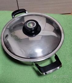 Vendo in blocco due pentole AMC, diametro del fondo cm 22,50 (una cod. 8054, altezza cm 9, l'altra cod. 8104, altezza cm 16) con un unico coperchio.