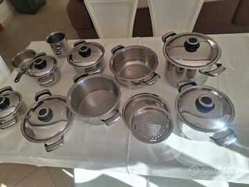 Vendo batteria di pentole in acciaio inox18/10 Inoxpran, composta da diverse pentole di varie misure, coperchi, pentolino, una padella. e due colapasta. Le condizioni sono ottime , usata pochissimo.