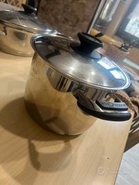 Vendo set pentole con coperchi, marca mondial casa in acciao inox con fondo spesso, di varie misure, usate pochissimo, 2 padelle una di diametro 23 cm e l’altra 30 cm, bistecchiera con diametro 33 cm, pentola per cottura a vapore da 4 pezzi, due pentole da forno con coperchio una con misure 23 x 35 e l’altra 34 x 40, pentola grande da 6 perosne con coperchio di diametro 27cm e altezza 20 cm.