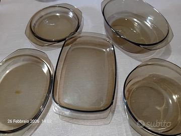 Vendo Vendo da giorni con coperchi + una pirofila. Vetro colore marrone da forno. In tutto 5 pezzi.
