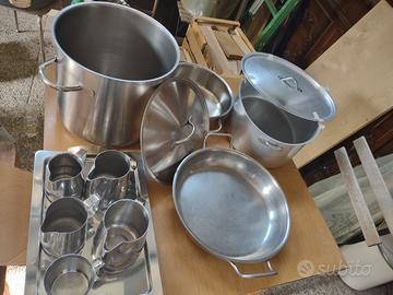 Pentole e bricchi in acciaio più 1 pentola in allu