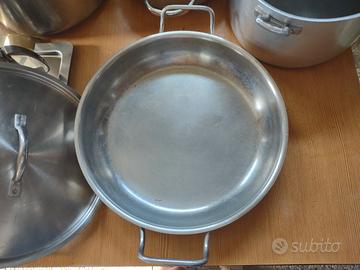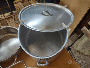 Vendo x inutilizzo 3 grandi pentole in acciaio più una ovale in alluminio,più bricchi in acciaio e vassoio. regalo utensili. Costo €.75
