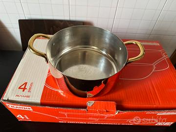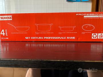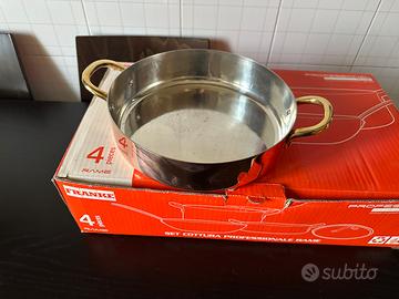 Vendo set di pentole in rame stagnate nuove mai utilizzate Franke serie Professional composto da: wok diam. 26 cm. casseruola alta diam. 20 cm. casseruola bassa/risottiera diam. 24 cm. coperchio diam. 24 cm.