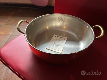 Coppia pentole in rame. Nuove. La casseruola ha un’ammaccatura su un lato.