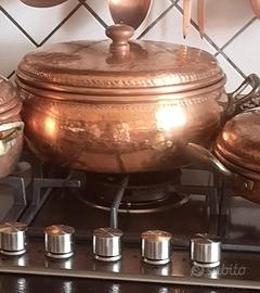 N.1 pentola rame Diametro 24 cm h 11 cm con coperchio, interno stagnata