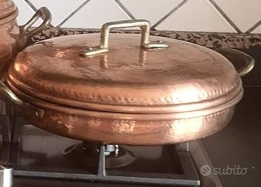 N.1 pentola rame Diametro 27 cm h 5 cm con coperchio, interno stagnata