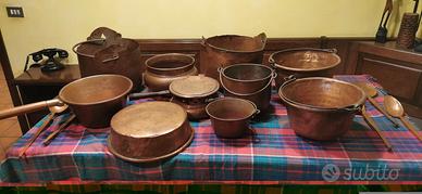 Pentole in rame alcune battute a mano e stagnate.