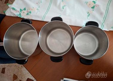 3 pentole usate quasi niente, diametro superiore (bocca) 24-23-20cm, Altezza 19-18,50-17, senza coperchio, vendibili anche separatamente. Singolarmente 40€-30-20€