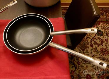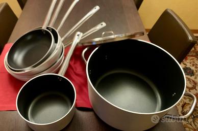 Pentole nuove mai usate, errato acquisto senza la possibilità di restituirle causa scadenza dei termini e perchè avevo tolto tutte le etichette. Non mi ero accorto che non sono adatte per l'induzione ed è questo il motivo della richiesta di restituzione. Sono 4 padelle da 32 cm, 1 padella da 28 cm, una casseruola da 24 cm ed una casseruola grande da 40 cm con coperchio. Ho speso 404,46 Euro, dimostrabili con fattura Metro. Marca professionale Ballarini made in Italy. Vendo a 300 euro solo in blocco con ritiro a Udine, non spedisco.