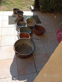 Vendo pentole in rame vecchie varie misure in buone condizioni .erano appese alla pergole come bellezza ..ma ho deciso di toglierle..al prezzo di 200€