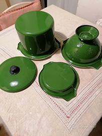 Pentole in metallo smaltate Piu scolapasta 17x27 ideali x arredi vintage(trattorie) 19x27 altezza pentola grande con coperchio (ammaccature sul bordo coperchio) Pentola bassa 23 diametro con manici 26 diametro x 4cm altezza