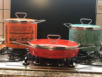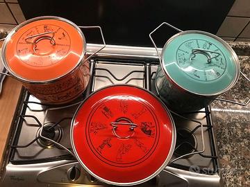 Vendo set pentole SILTAL tema immagini egizie: sono in ottime condizioni come si può vedere dalle immagini. Ai veri interessati posso inviare misure dettagliate.