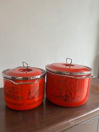 Pentole vintage prodotte dall'azienda italiana Siltal e disegnate da Carla Agnelli negli anni '70.