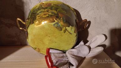 Vendo vecchio pentolino in alluminio decorato con decoupage