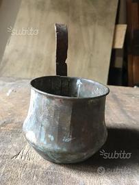 Antico pentolino di rame misure: h 10 cm diametro 13 cm